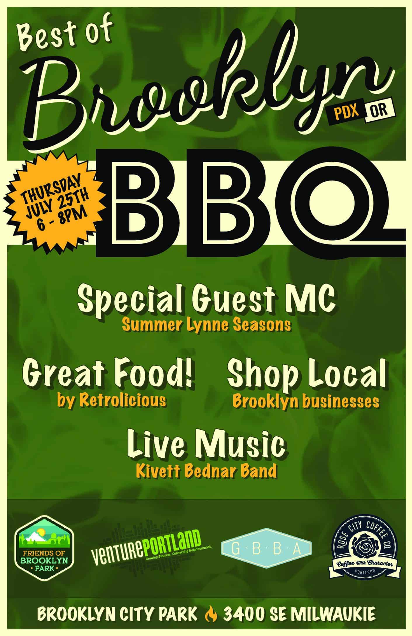 Events Sponsors include Greater Brooklyn Business Assoc., Venture Portland, Friends of Brooklyn Park, Rose City Coffee